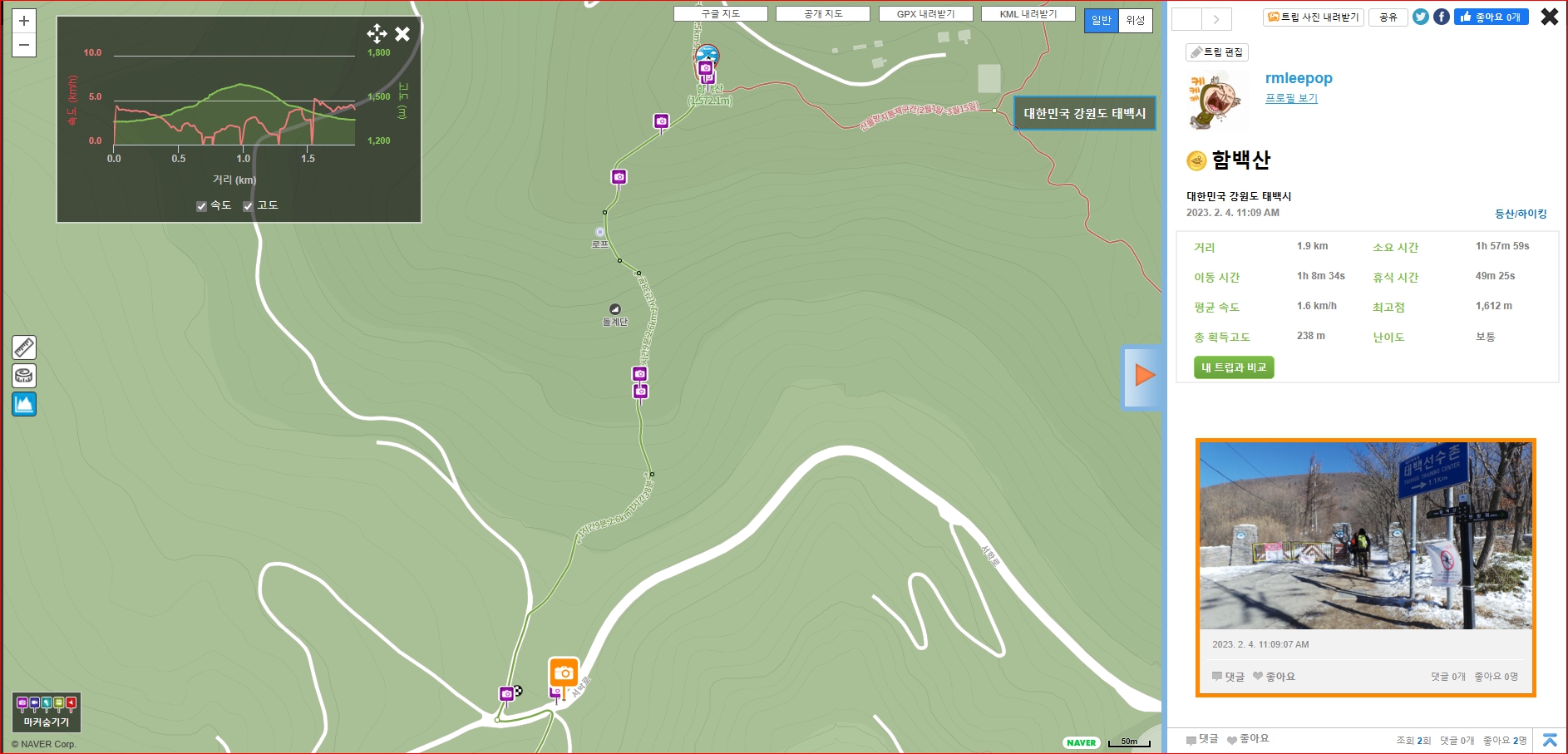 계획은 만항재 주차장에서 출발하려하였으나 1시간이 늦어져 약간 찝찝(?)하지만 계획을 변경하여 가장 단코스로 산행하기로 계획을 변경하였다(왕복 약 2Km )