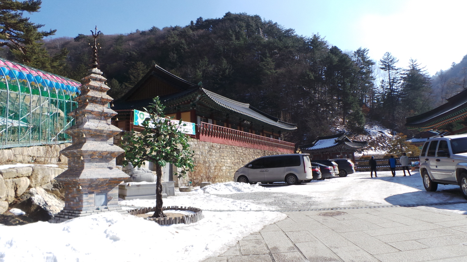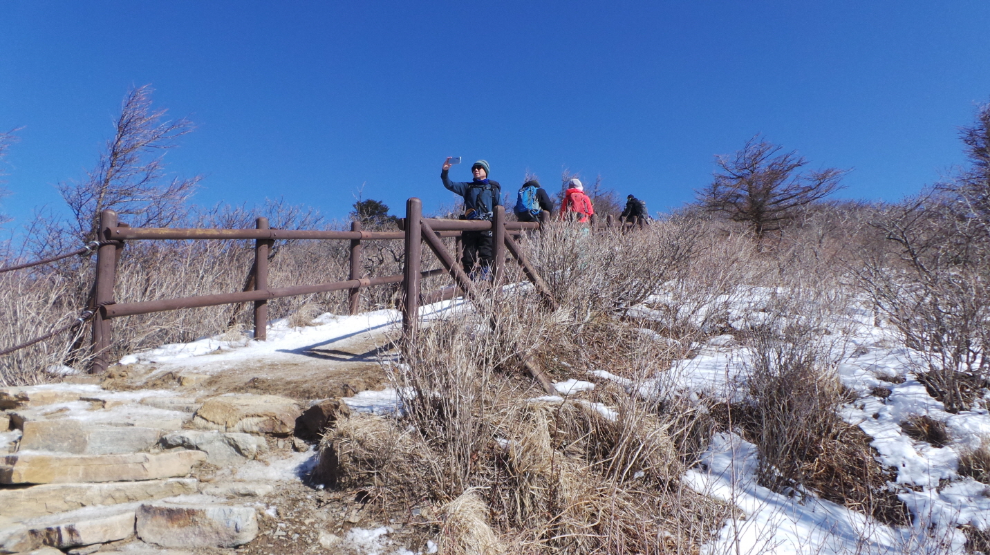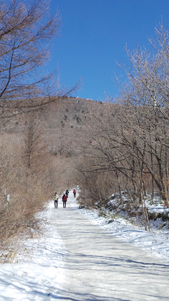 (또 휴일이다 보니 사람들이 많이 몰려 좁고, 눈으로 미끄러운 구간이 있어 지체가됨)