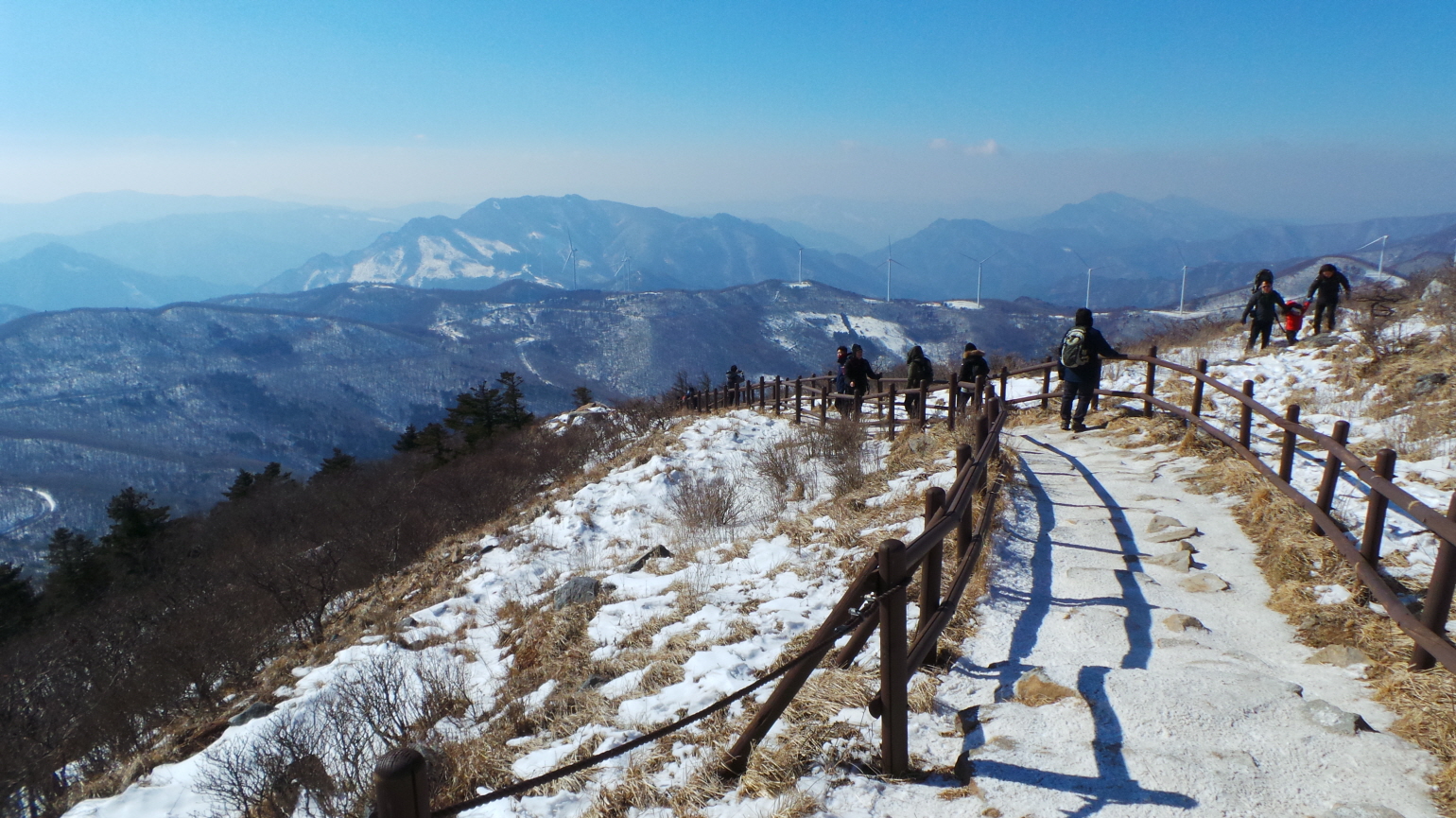 내려오는 길 역시 산행로가 좁고 눈길이다 보니 올라오는 사람들과 교차하는데 시간이 지체되었다